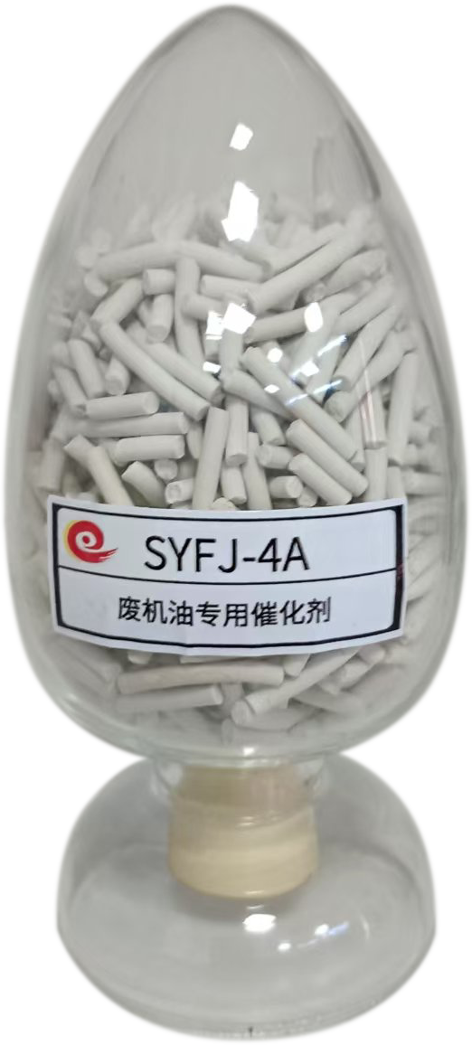 我公司针对废机油,齿轮油等润滑油炼制柴油的项目,研制出一种效率高的废机油专用催化剂,该催化剂能明显地提高出油的质量。而且对产物柴油的选择性高,产物柴油十六烷值较高,一般比催化裂化柴油高10-20个单位,牌号为SYFJ-4A  SYFJ-4B 。