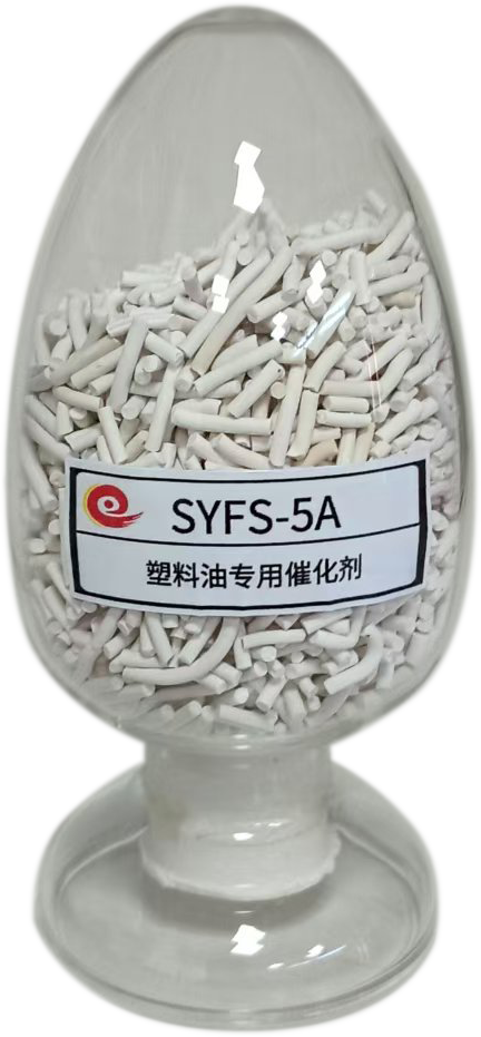 我公司针对废塑料炼制柴油的项目,研制出一种废塑料油专用催化剂,型号为SYFS-5A SYFS-5B。该催化剂能明显地提高出油的质量。而且对产物柴油的选择性高,蒸馏后,油成淡黄色,密度能达到0.79-0.82,臭味基本消除(因其对塑料中的添加剂也进行了裂解处理)。十六烷值、辛烷值高,裂解气中C2干气很少,液体收率在90%以上; 还具有降凝功效(凝点可控制在0--20℃)。