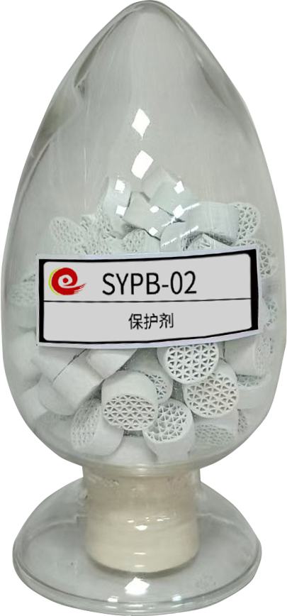 SYPB-02是负载适量金属的蜂窝鸟巢保护剂,此保护剂是在高孔容大比表面积异形载体上负载优选的活性金属组元,可对原料中的胶质和烯烃以及稠环芳烃、金属进行转化和加氢饱和,达到防止压降上升、延长运转周期、脱胶质、保护主催化剂的目的。